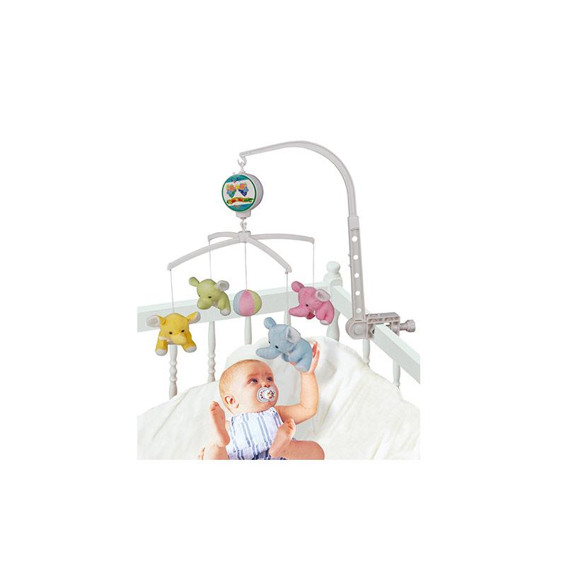 Важная деталь: все элементы выполнены из гипоаллергенного пластика и текстиля с повышенной износостойкостью. Мобиль не требует батареек — достаточно завести механизм, чтобы запустить 10-минутный цикл вращения с нежной мелодией.