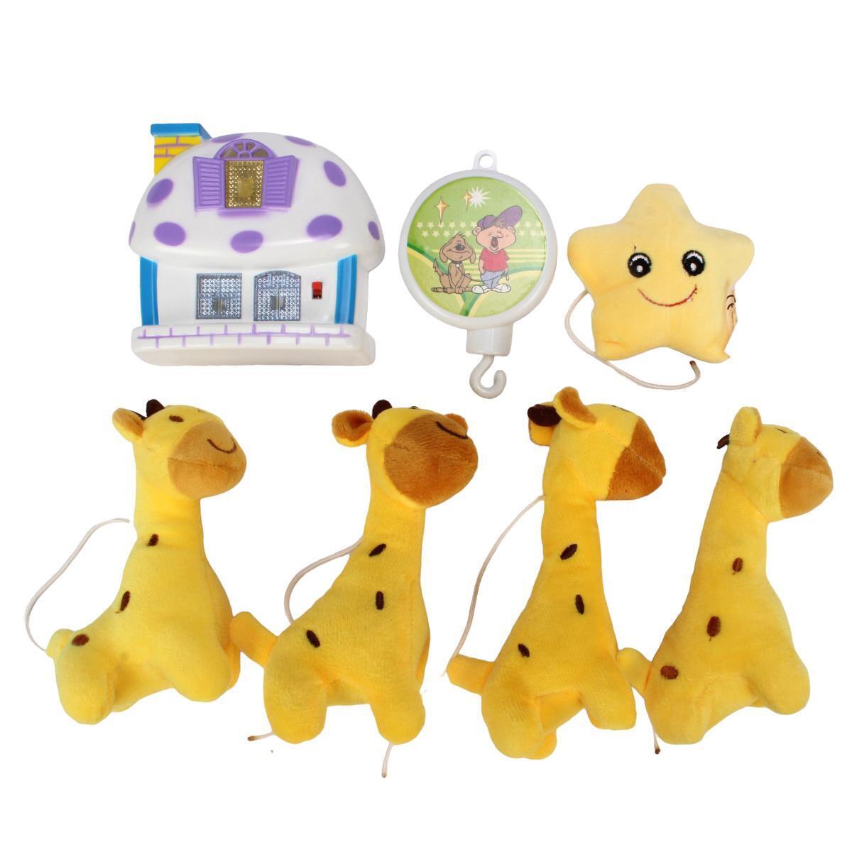 Мобиль музыкальный "Жирафы и звезда", желтый/коричневый, пластик/текстиль