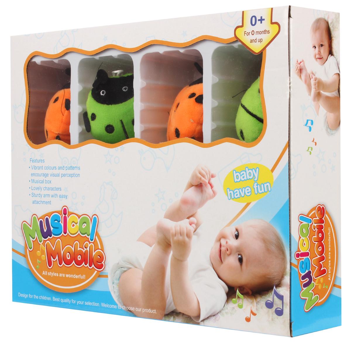 Каркас выполнен из прочного пищевого пластика, он легко крепится на кроватку или коляску, обеспечивая безопасность и комфорт для малыша. Размер мобильной части составляет 47 см, что идеально подходит для небольших кроваток и игровых зон. Музыкальный блок воспроизводит приятные мелодии, создавая уютную атмосферу для сна и игр.
