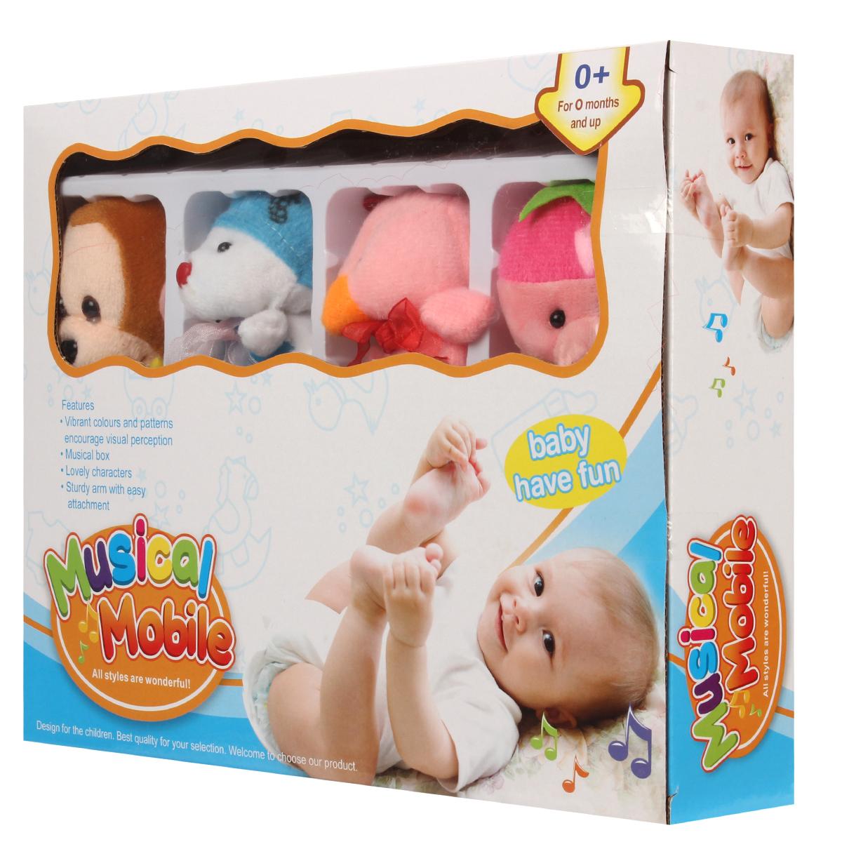 Этот мобиль выделяется среди других благодаря своим ярким цветам и разнообразным формам игрушек, которые включают зайца, свинку, птичку и обезьянку. Каждая игрушка выполнена из безопасного текстиля, что делает их идеальными для маленьких детей. Музыкальный механизм добавляет мелодии, которые успокаивают и развлекают малыша.