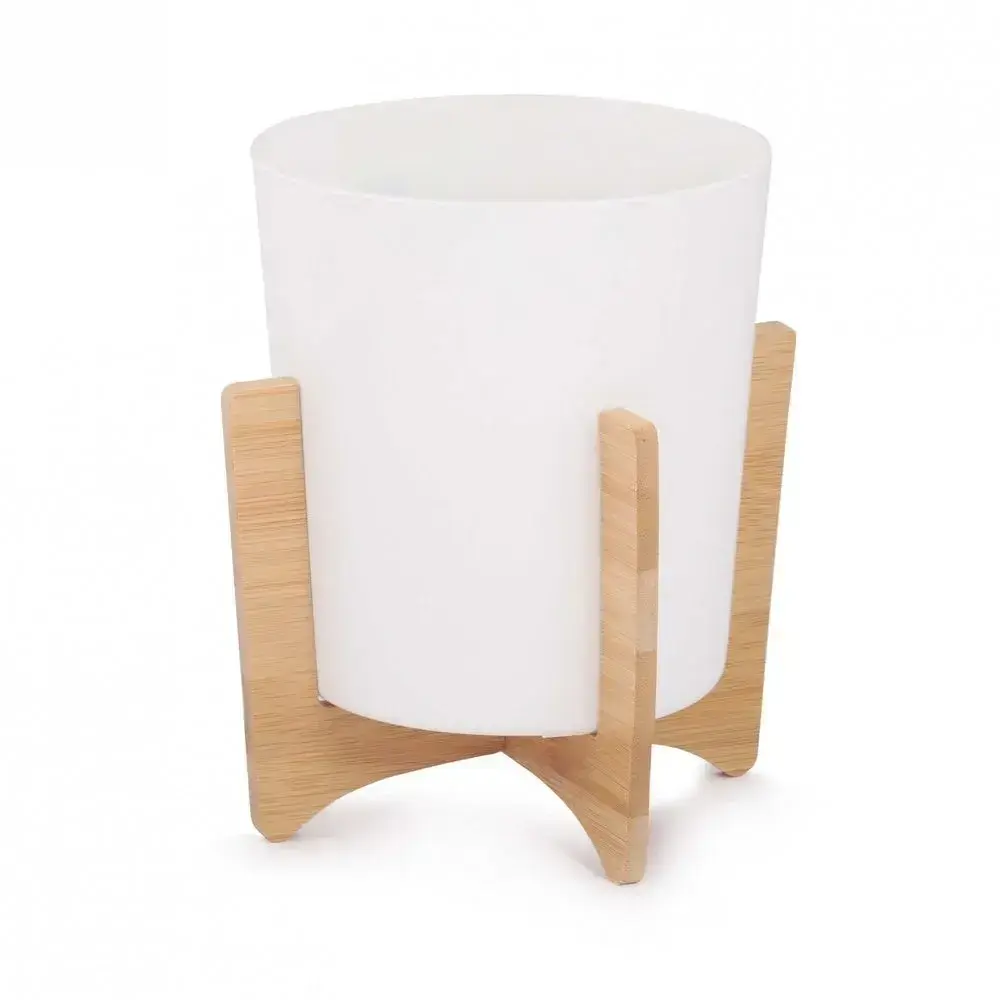Горшок из морозостойкого пластика (1.8 л) устойчив к перепадам температур, а деревянная подставка обработана защитным составом. Совместим с системами автополива. Диаметр основания: 14 см, высота конструкции: 18 см.