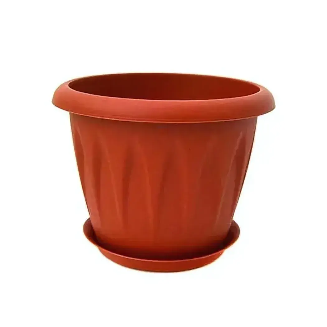 Кашпо "АЛИЦИЯ" с поддоном, пластик, 1л, диаметр 14см, цвет терракотовый