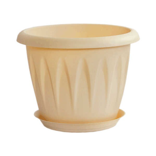 Кашпо пластиковое "АЛИЦИЯ" D120мм, цвет белая глина, с поддоном