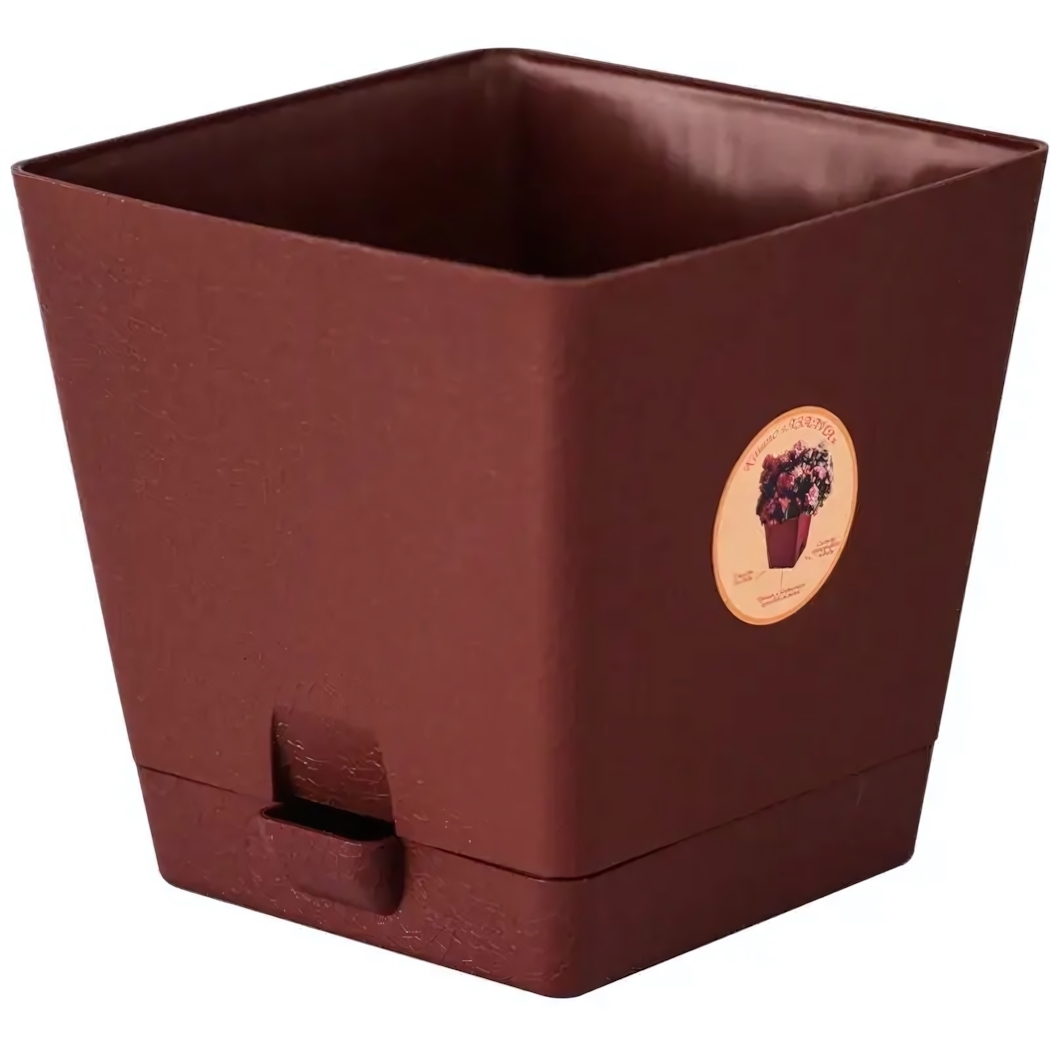 Квадратное кашпо «Азалия» — идеальное решение для домашнего цветоводства. Изготовленное из прочного пластика в насыщенном темно-коричневом цвете, оно сочетает практичность и эстетику. Матовая поверхность скрывает следы эксплуатации, сохраняя безупречный вид даже при активном использовании.