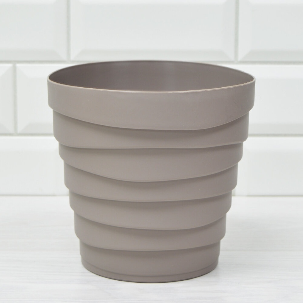 Пластиковое кашпо в оттенке мокачино станет идеальным решением для создания уютной атмосферы и защиты корневой системы растений. Стильная матовая поверхность с рельефными полосами гармонично впишется в современный интерьер, подчеркивая вашу любовь к деталям.