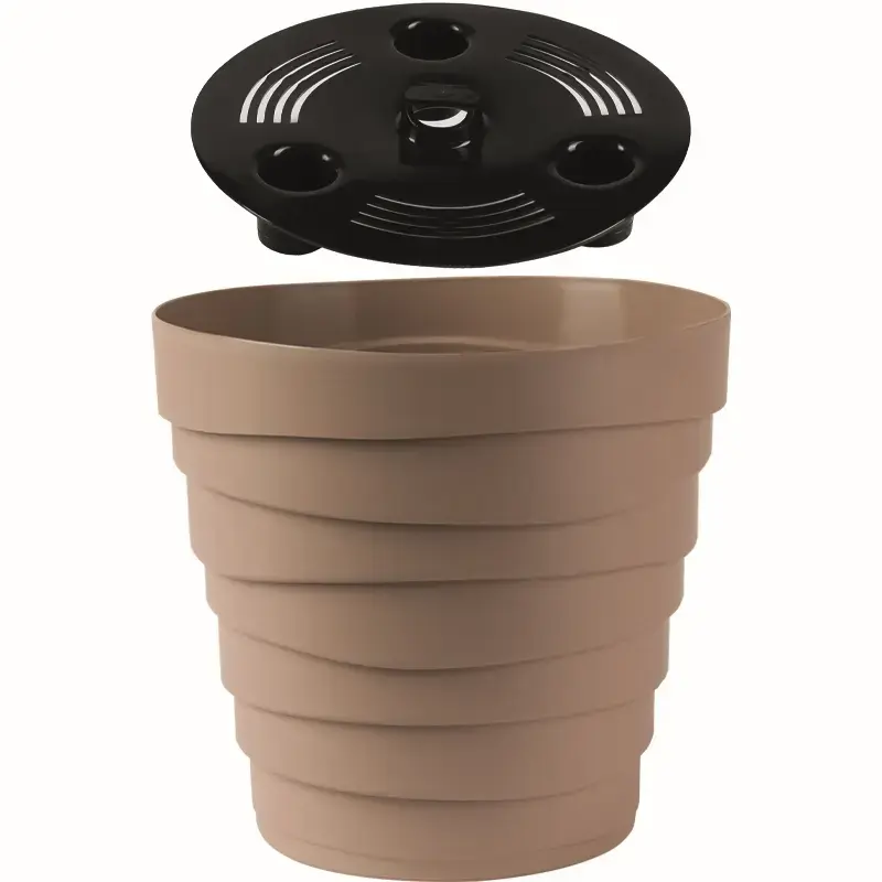 Кашпо выполнено из качественного пластика, что обеспечивает его долговечность и устойчивость к внешним воздействиям. Объем составляет 2,25 литра, а диаметр — 18 см. Это идеальный размер для большинства домашних растений. Гладкая поверхность облегчает уход за кашпо, а рифленая текстура придает ему современный вид.
