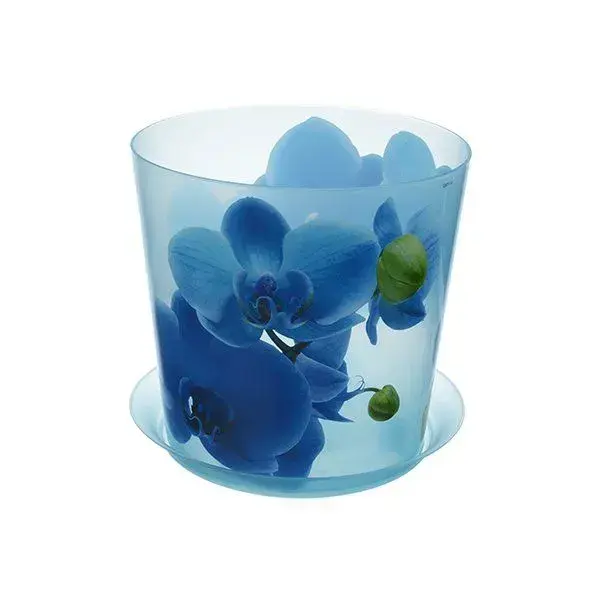 Кашпо пластиковое с подставкой для орхидеи, d160мм, 2,4л, прозрачное, голубая орхидея