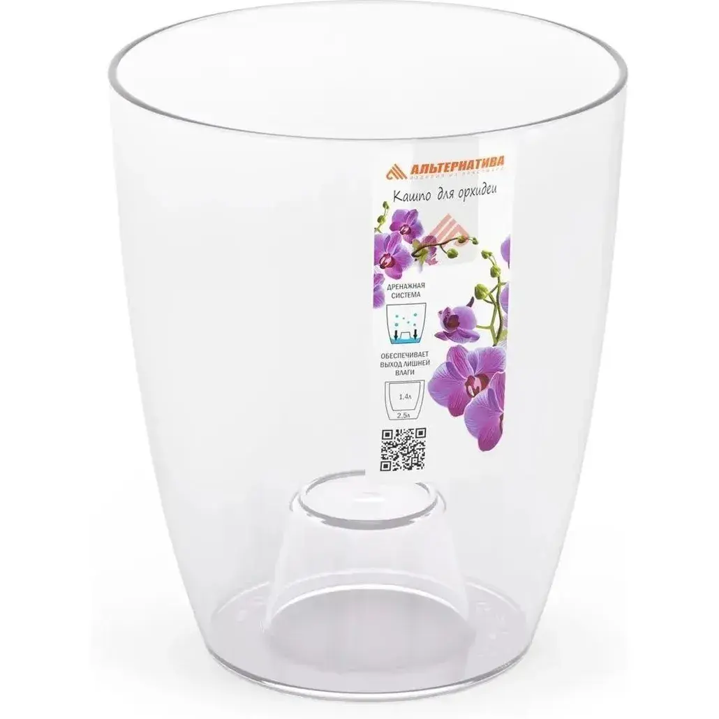 Изготовленное из прочного пластика кашпо сохраняет прозрачность годами, не мутнеет от воды и удобрений. Оптимальный объем 1.4 л и диаметр 130 мм подходят для большинства видов орхидей. Совместимо с любыми подоконниками и подвесными системами.