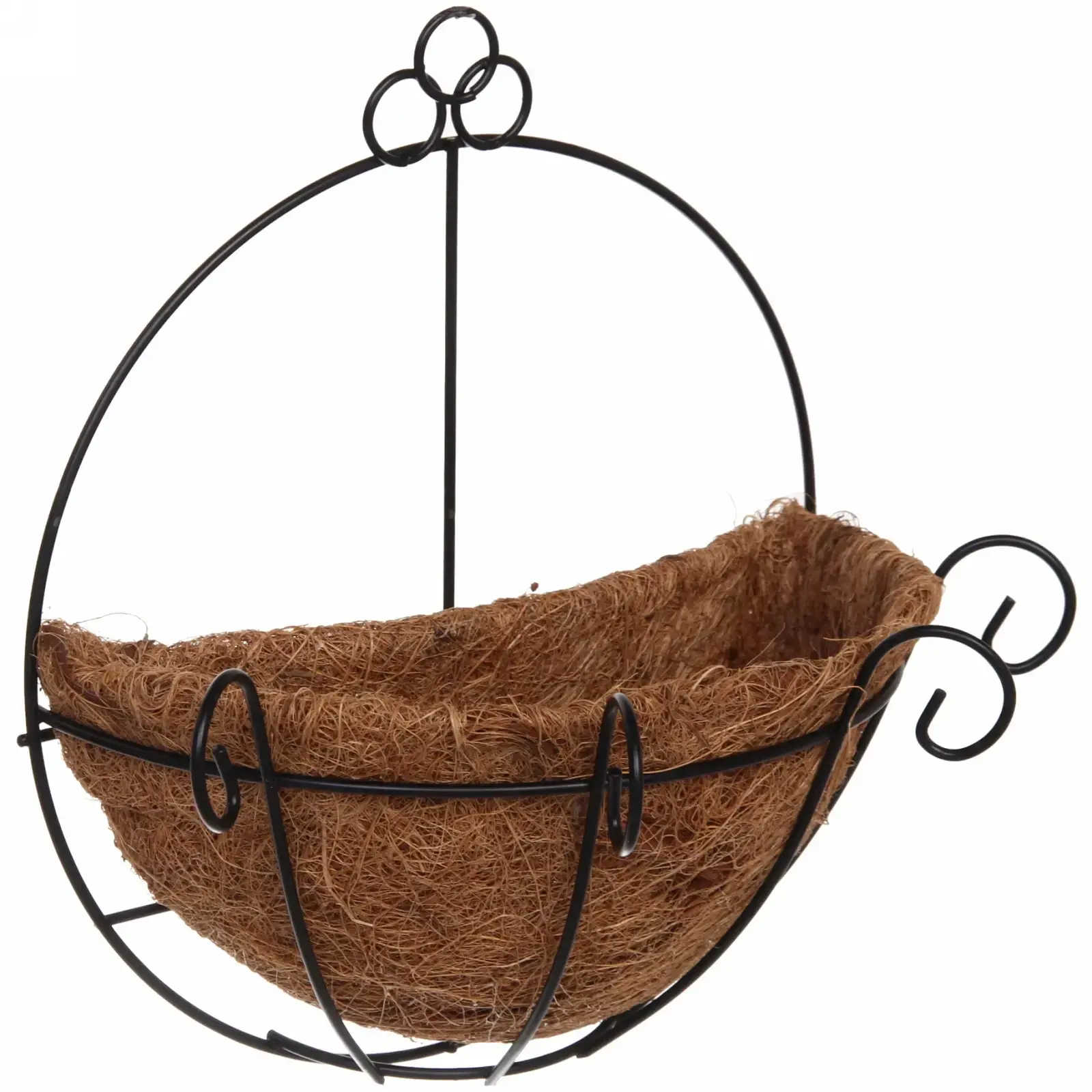 Кашпо имеет диаметр 20 см и объем 0,5 литра, что делает его идеальным для небольших растений или цветочных композиций. Черный цвет металлической конструкции придаёт ему современный вид, а кокосовое волокно внутри обеспечивает необходимую поддержку для ваших растений. Это кашпо станет отличным выбором для тех, кто ценит качество и стиль.
