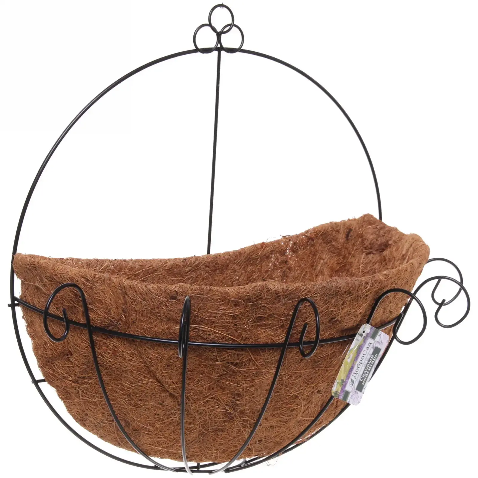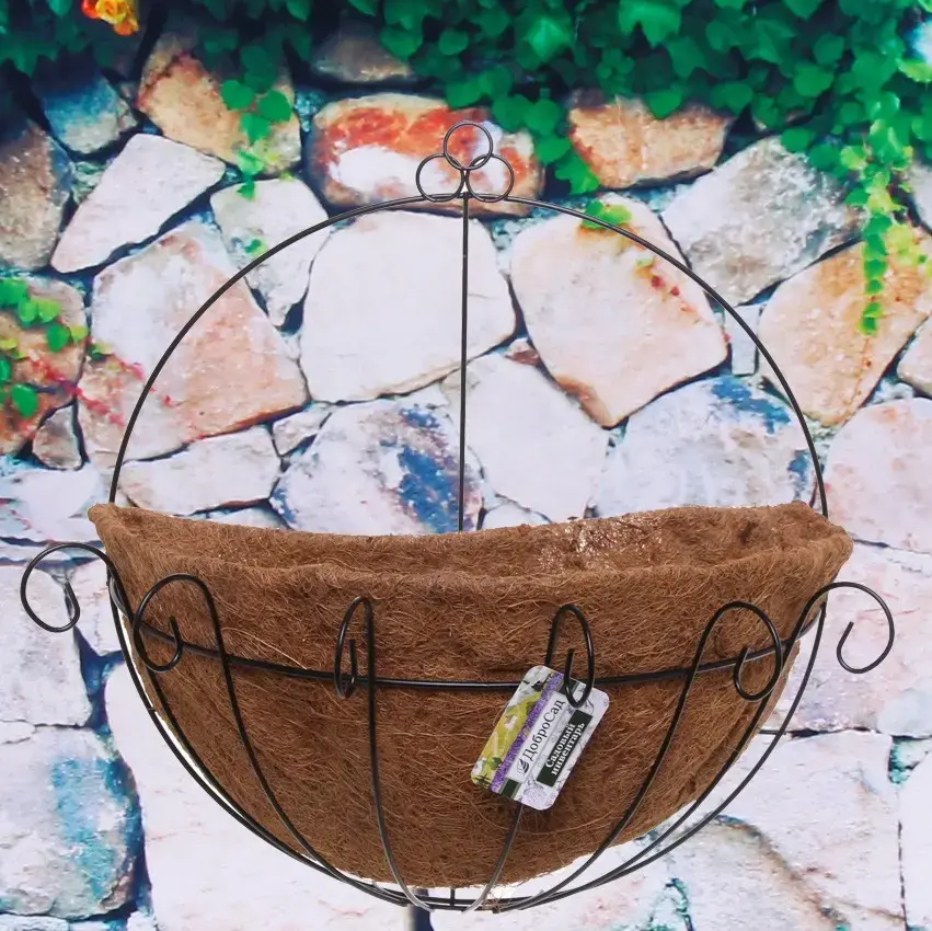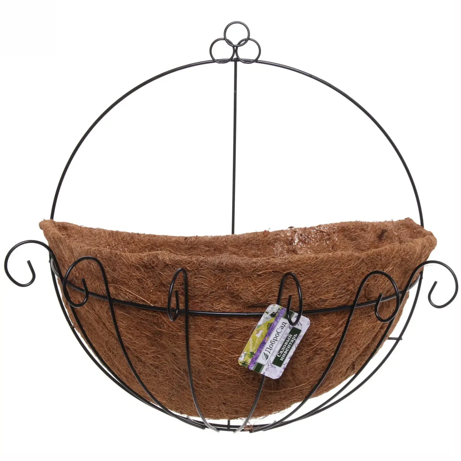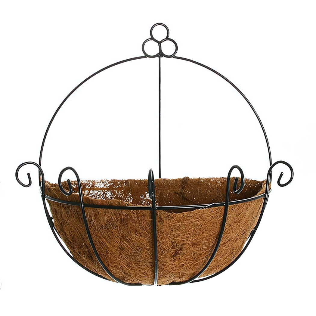 Объём 2.3 литра оптимален для большинства комнатных растений. Кокосовое волокно толщиной 1.5 см защищает корни от пересыхания и переувлажнения. Металлическая основа выдерживает до 5 кг нагрузки — можно безопасно подвешивать на ветки деревьев или потолочные крюки.