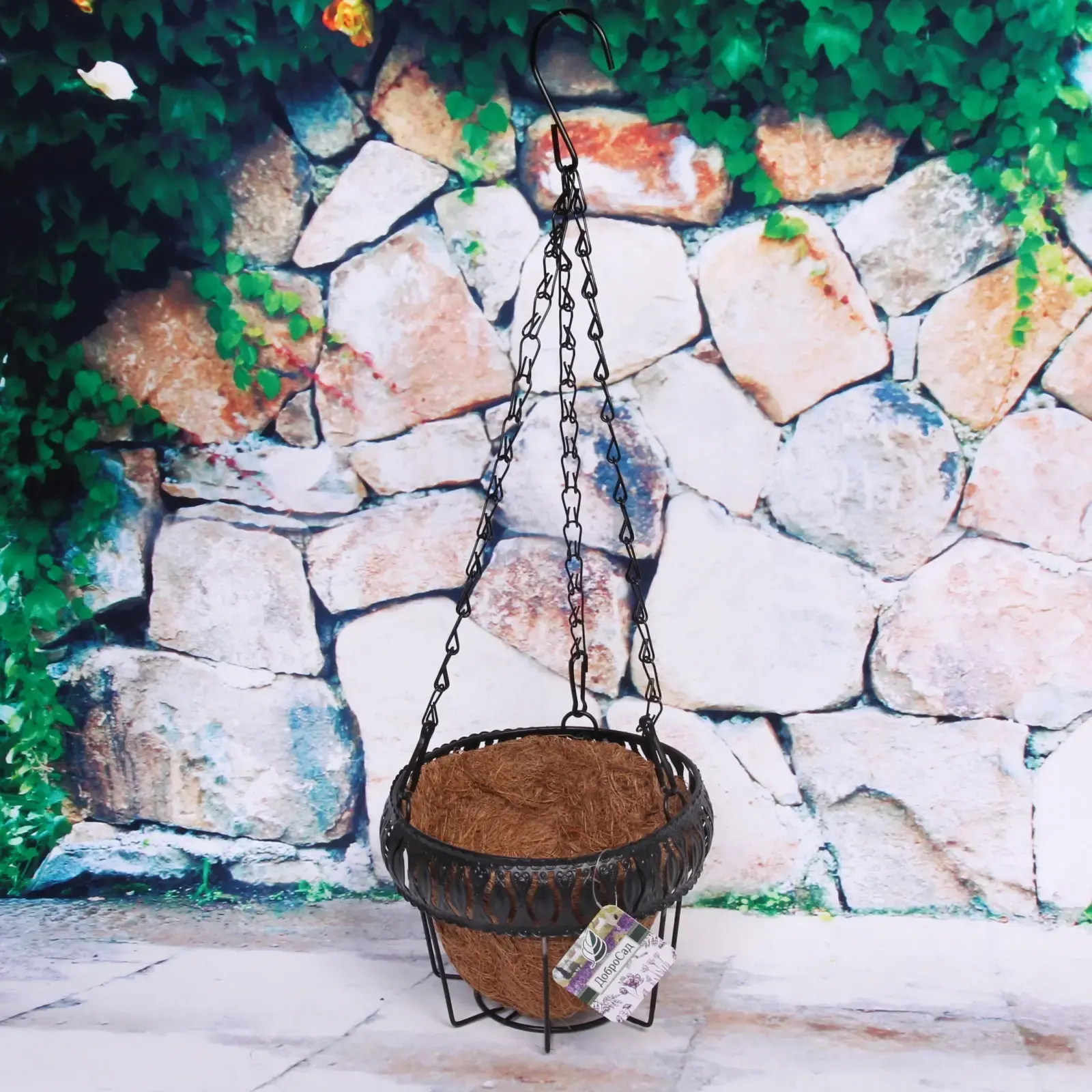 Элегантное подвесное кашпо сочетает природную эстетику и функциональность. Идеально для компактного размещения растений в саду, на балконе или в интерьере. Кокосовое волокно обеспечивает естественный дренаж, а прочный металлический каркас гарантирует долговечность.