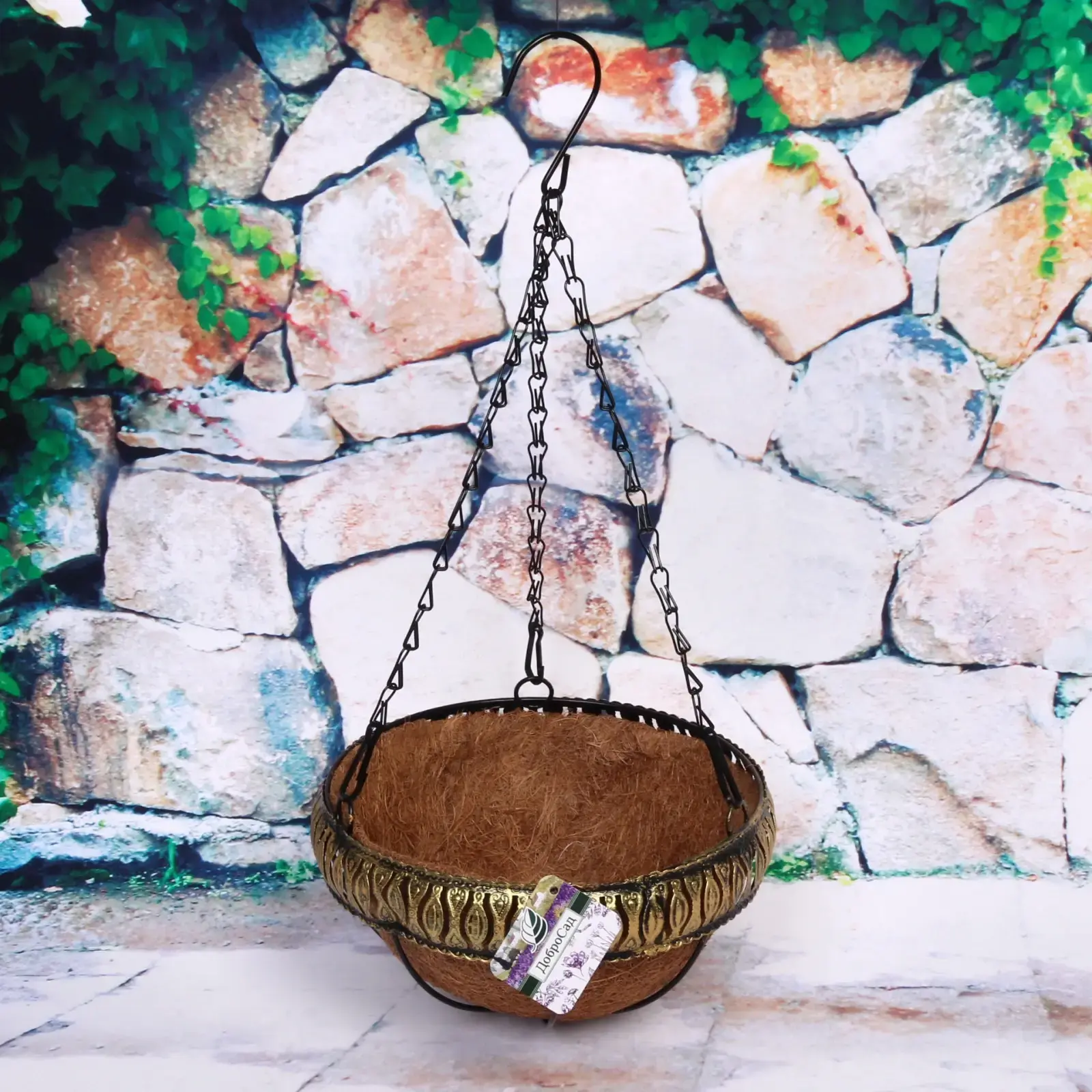 Подвесное кашпо «Коковита» 1,2л с кокосовым волокном, металл, d20см, для дома и сада