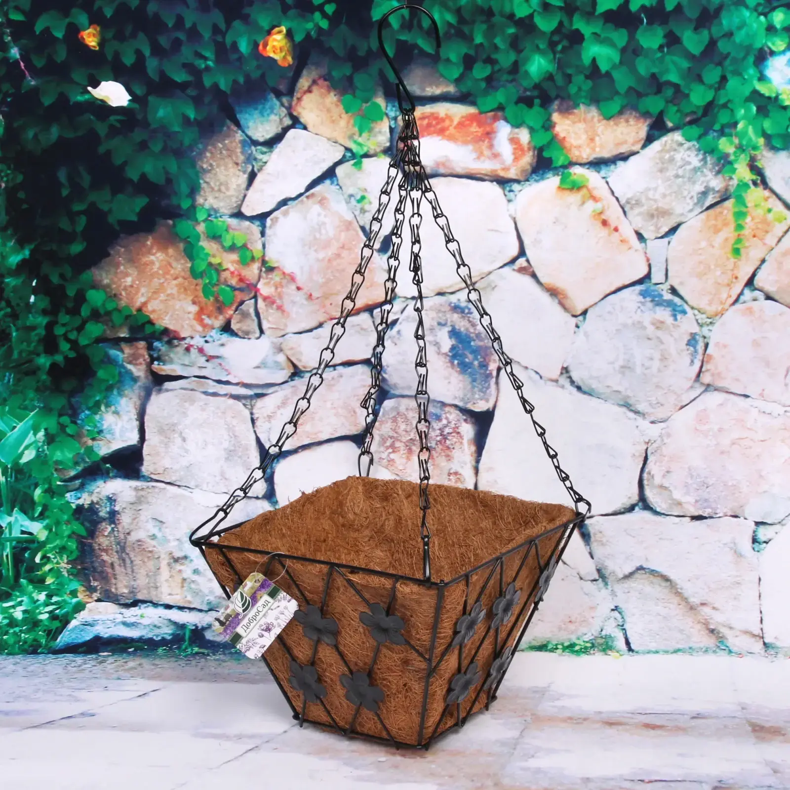Кашпо подвесное «Коковита» с кокосовым волокном, 1,8л, d=20см, металлический каркас, декор цветы