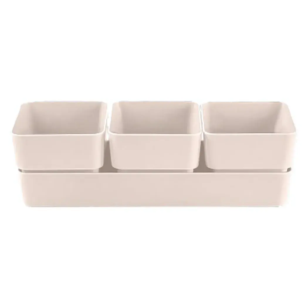 Размеры кашпо составляют 29,2 см в длину и 9,6 см в ширину, что делает его компактным и удобным для размещения на подоконниках, столах или полках. Пластиковый материал обеспечивает долговечность и легкость в уходе, а пудровый цвет добавляет изысканности в ваш дом.