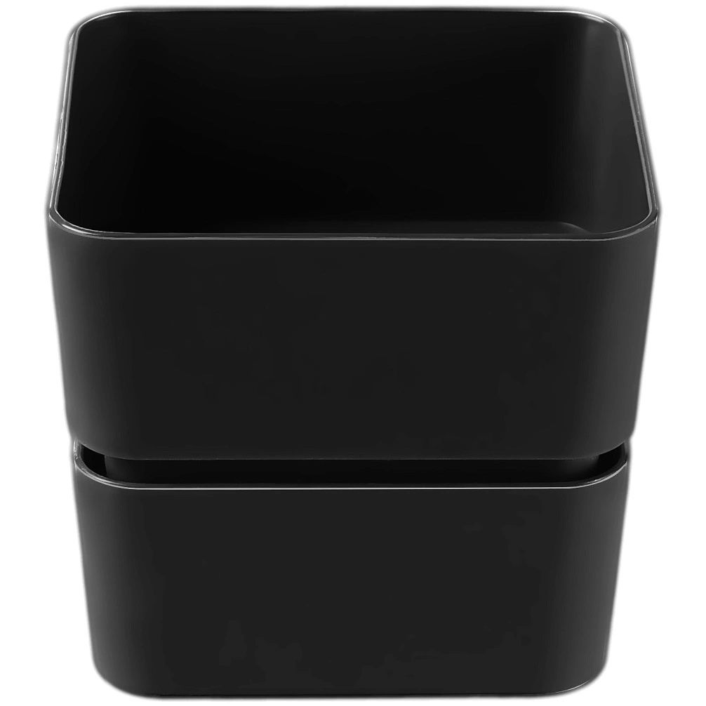 Кашпо изготовлено из прочного пластика, устойчивого к влаге и механическим воздействиям. Матовая чёрная поверхность выглядит аккуратно и современно, а компактные размеры 9,6х9,6х8,6 см позволяют использовать его как самостоятельный элемент декора или сочетать с другими кашпо в единой композиции.