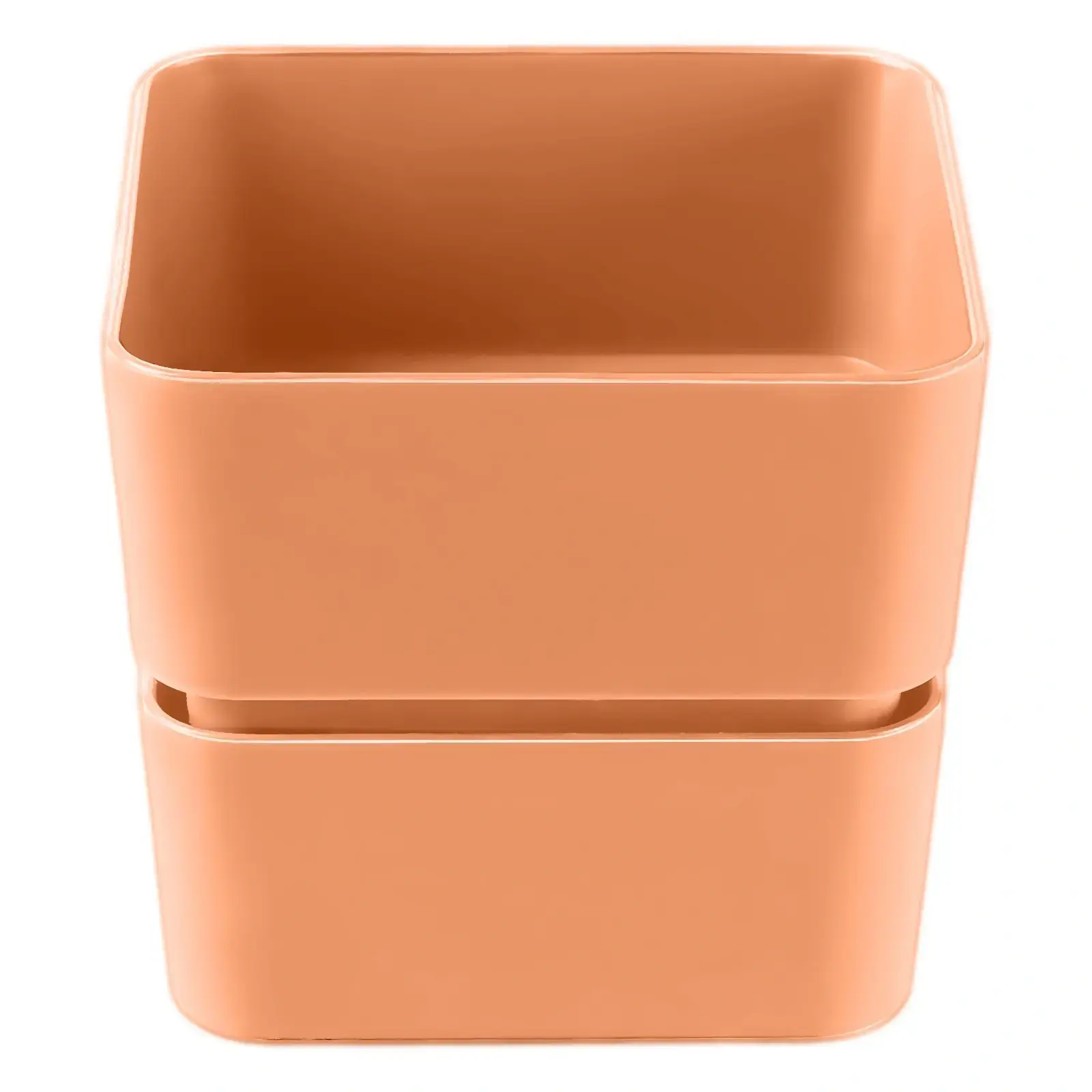Кашпо имеет квадратную форму и гладкую блестящую поверхность, что придает ему элегантный вид. Внутренняя часть контейнера более светлая, чем внешняя, что создает интересный контраст. Благодаря возможности укладки друг на друга, вы можете легко хранить несколько кашпо, экономя место.