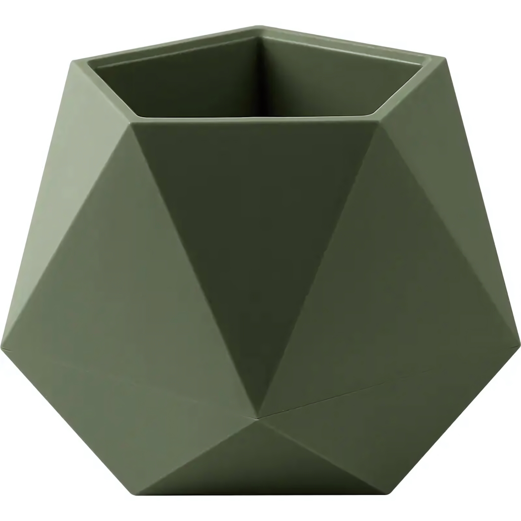- Современный дизайн: Многогранная форма и насыщенный тёмно-зелёный цвет (тёплая хвоя) делают его самодостаточным декоративным элементом.