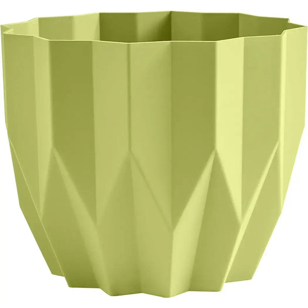Это кашпо для цветов станет не только функциональным элементом, но и стильным акцентом в вашем доме или саду. Яркий фисташковый цвет и современный геометрический дизайн придают ему уникальность и привлекательность. С объемом 0,8 литра и диаметром 13 см, оно идеально подходит для небольших растений и цветочных композиций.