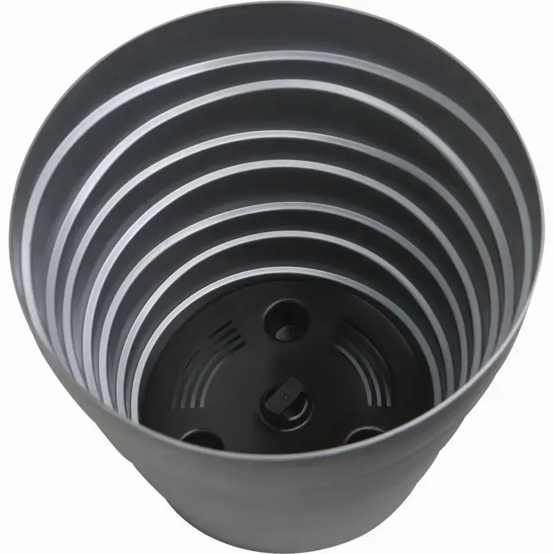 - Современный дизайн — конусообразная форма и рифленая поверхность придают кашпо стильный вид.