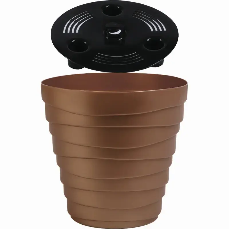 Кашпо имеет средние размеры, что делает его универсальным для большинства комнатных растений. Коричневый цвет и гладкая поверхность придают ему стильный вид, а рифленая текстура добавляет интересный акцент. Не упустите возможность украсить свой дом с помощью этого функционального и красивого кашпо!