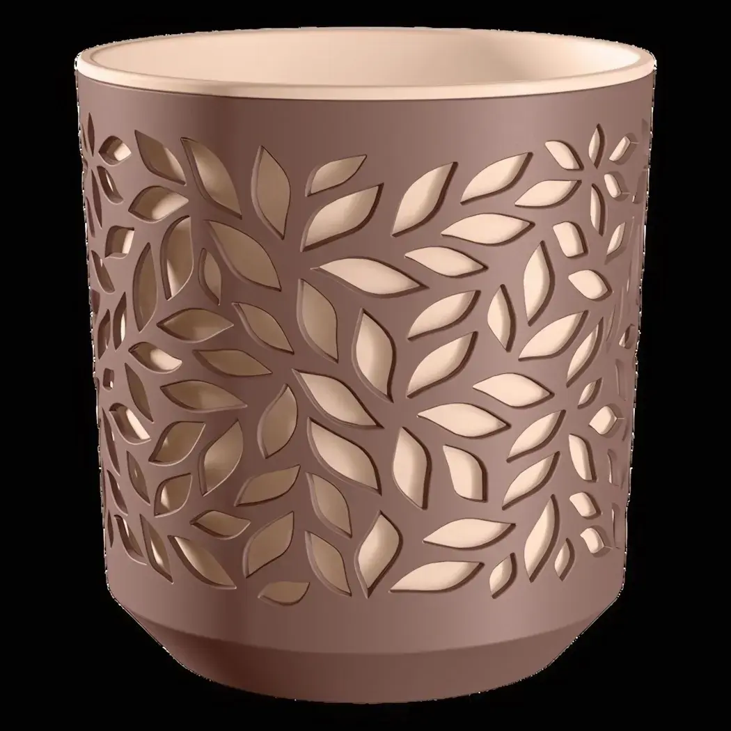 Кашпо имеет объем 1,25 литра и диаметр 16,2 см, что делает его идеальным для большинства комнатных растений. Цветовая гамма в сочетании мокко и пудры придаст вашему интерьеру стильный и современный вид. Выбирая кашпо «Leaves», вы получаете не только красивый, но и практичный элемент декора, который прослужит вам долго.