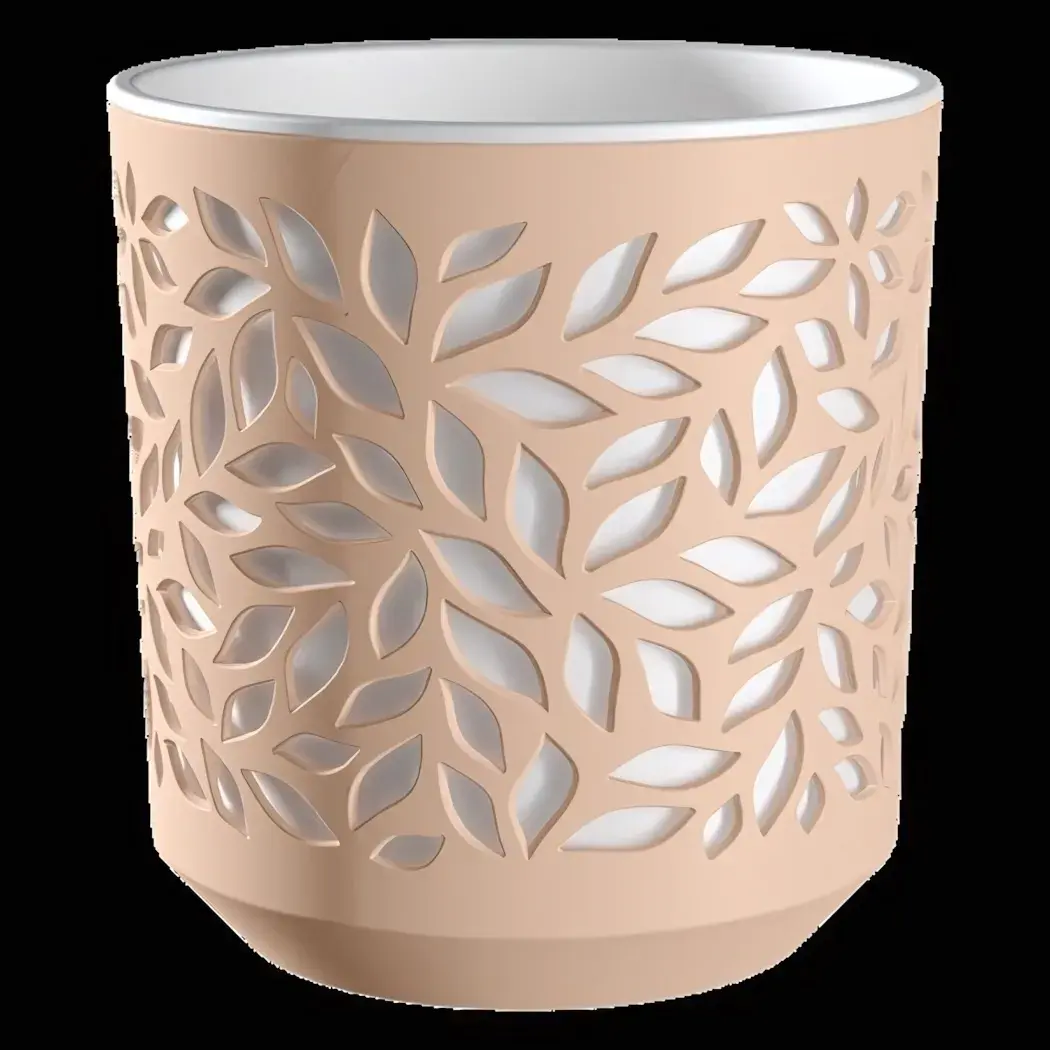 Кашпо пластиковое «Leaves» с перфорацией, 1,25 л, d16,2см, пудра/белый