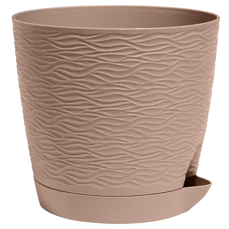 Диаметр 14 см и объём 1,5 л подходят для большинства комнатных растений среднего размера. Лаконичная круглая форма с волнообразным рельефом добавляет декоративности, превращая обычный горшок в элемент интерьера.