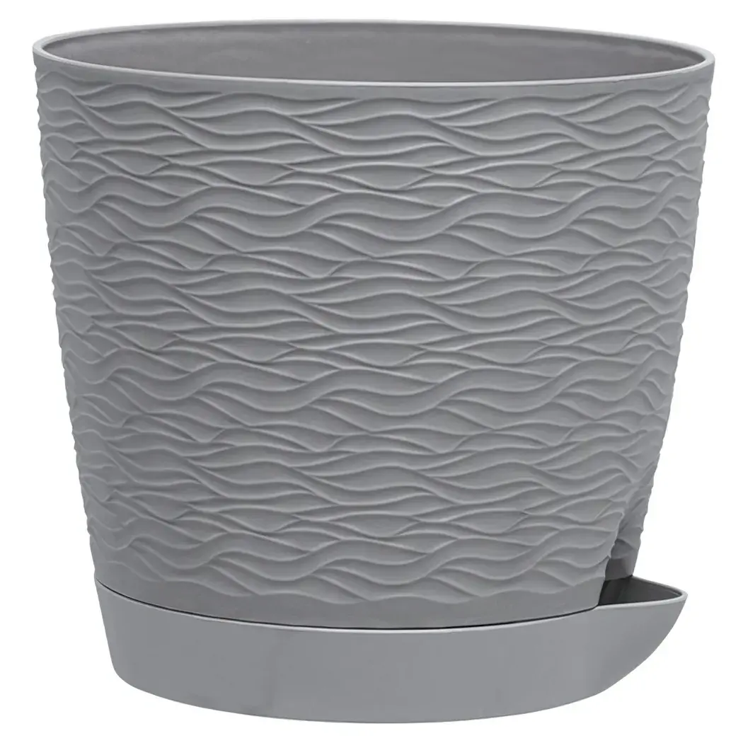 Пластиковое кашпо с поддоном сочетает современный дизайн и практичность. Волнистый рельеф и нежный серо-жемчужный оттенок создают эстетику, которая гармонично впишется в интерьер кухни, гостиной или офиса.