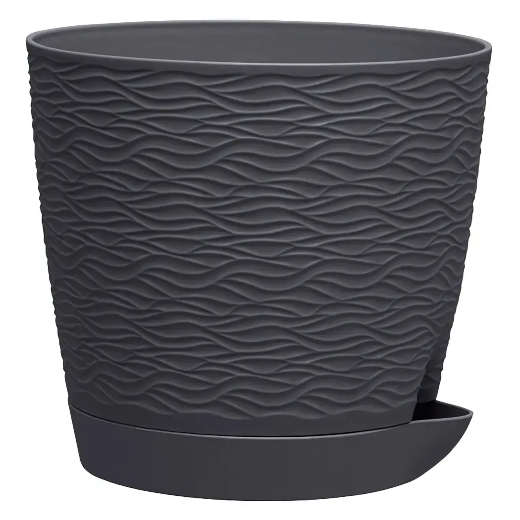 Кашпо для цветов «Блюз» станет идеальным решением для создания уюта и гармонии в вашем доме. Его стильный антрацитовый цвет и волнистая текстура придадут вашему интерьеру современный вид, а конструкция с поддоном обеспечит удобство в уходе за растениями. Благодаря специальному носику на поддоне, вы сможете осуществлять прикорневой полив, что значительно упростит процесс ухода за вашими цветами.