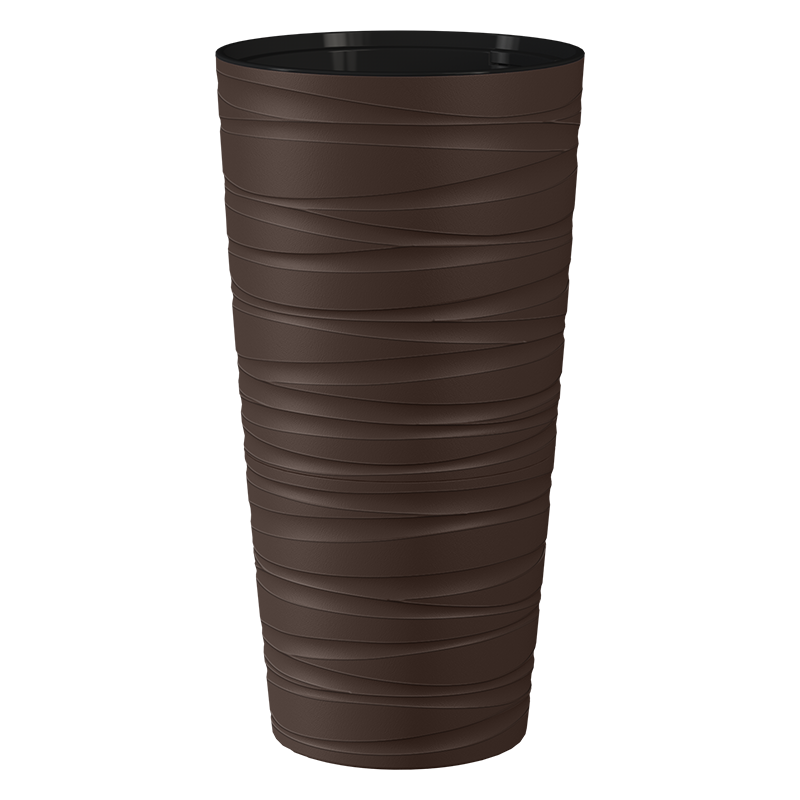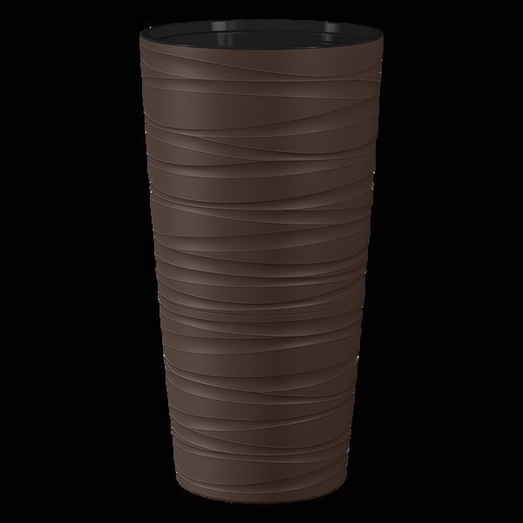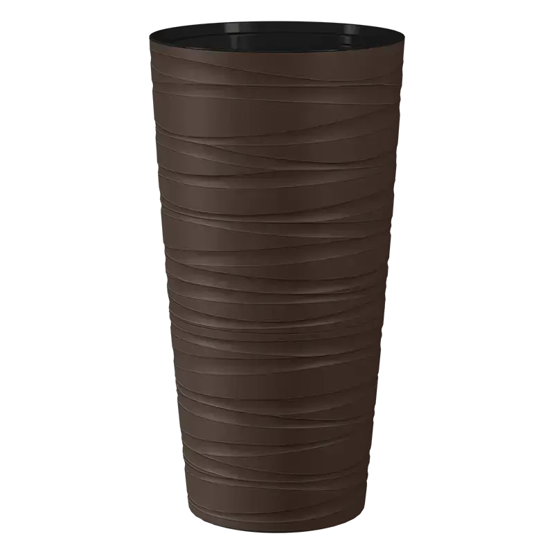 Размеры кашпо: объем 15 литров, диаметр 30 см. Оно выполнено из качественного пластика, что гарантирует его долговечность и надежность. Темно-коричневый цвет и текстурированная поверхность придают кашпо элегантный вид, который будет радовать глаз и подчеркивать красоту ваших растений.