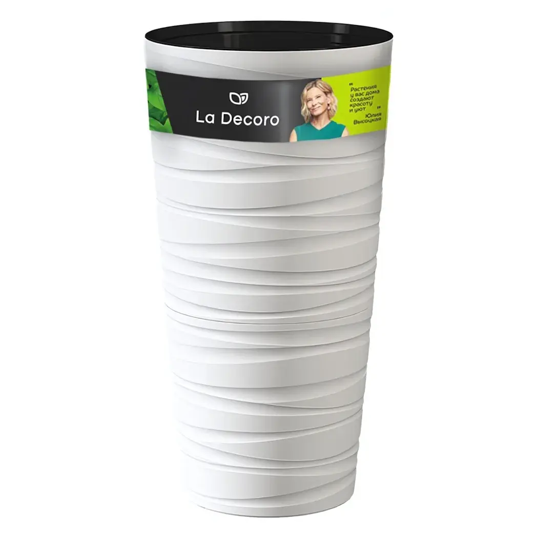 Объём 15 литров подходит для крупных растений. Диаметр 30 см оптимален для большинства видов. Белый цвет с текстурным узором маскирует загрязнения и сочетается с любым декором. Рельефная поверхность скрывает царапины в процессе эксплуатации.