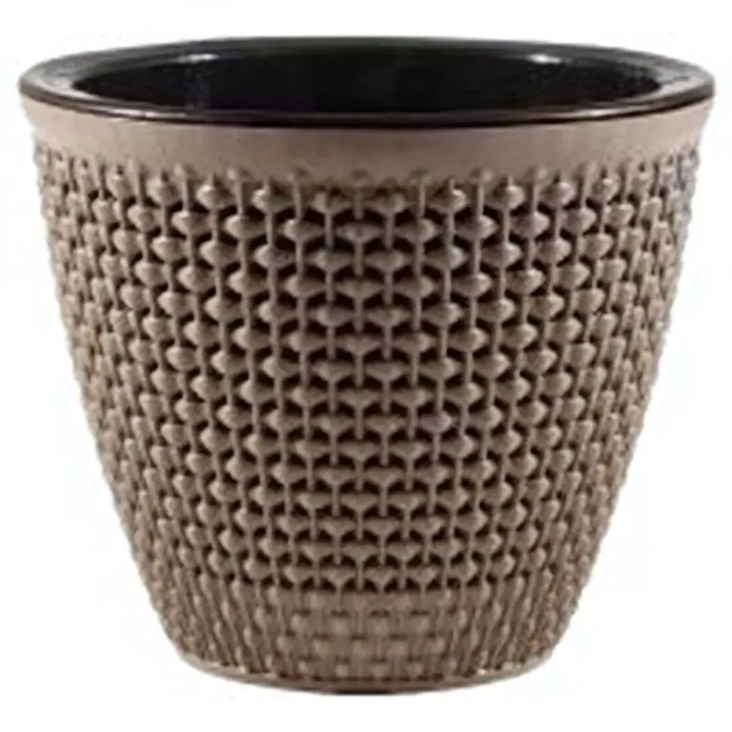 Объем кашпо составляет 1,6 литра, а диаметр — 16 см. Цвет кашпо — светло-коричневый с черным внутренним слоем, что придаёт ему стильный вид. Рельефный узор в виде сетки добавляет оригинальности и делает кашпо не только практичным, но и эстетически привлекательным.