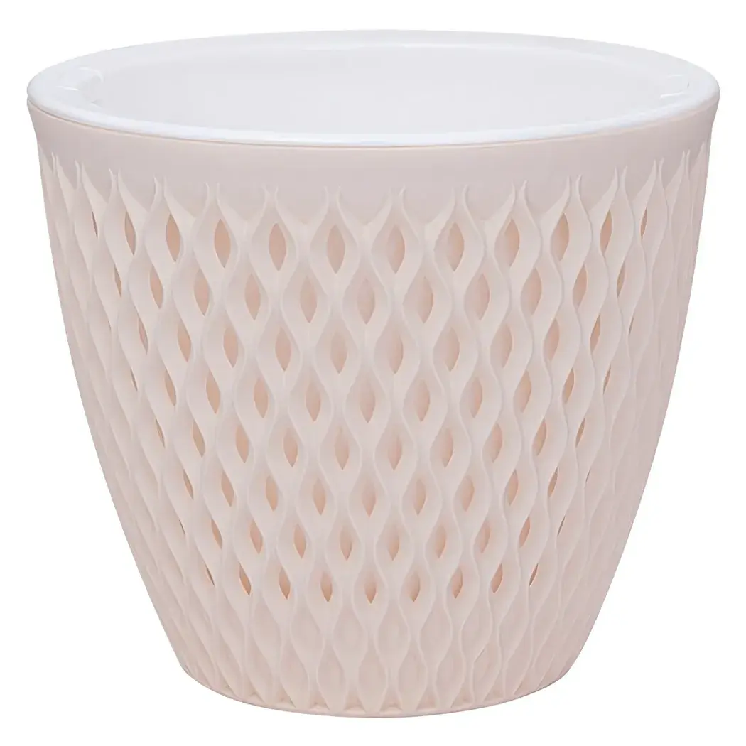 Кашпо для цветов серии «Версаль» объёмом 1,6л станет идеальным решением для создания уютной атмосферы в вашем доме или офисе. Нежный кремовый цвет и ажурная поверхность, напоминающая крупную вязку, гармонично впишутся в любой интерьер, добавляя ему стиль и элегантность. Это кашпо не только красиво, но и функционально, что делает его отличным выбором для любителей растений.