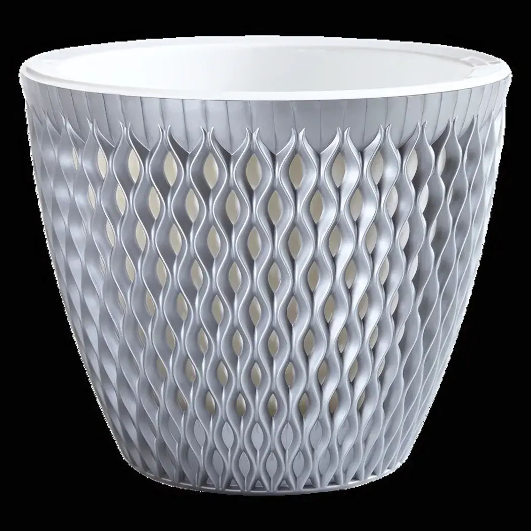 Кашпо имеет светло-серый цвет с белым внутренним слоем и украшено волнообразным рельефом, что придает ему текстурированный вид. Это делает его не только практичным, но и стильным элементом вашего интерьера. Выбирая кашпо «Версаль», вы получаете надежное и красивое решение для ваших растений.