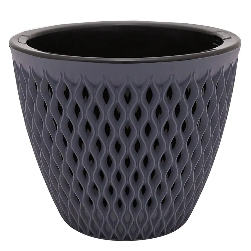 Кашпо выполнено из качественного пластика, что обеспечивает его долговечность и устойчивость к внешним воздействиям. Размеры кашпо составляют 1,6л объёма и 16 см в диаметре, что делает его идеальным для большинства комнатных растений. Цвет антрацит придаёт ему современный вид, который будет актуален в любое время года.