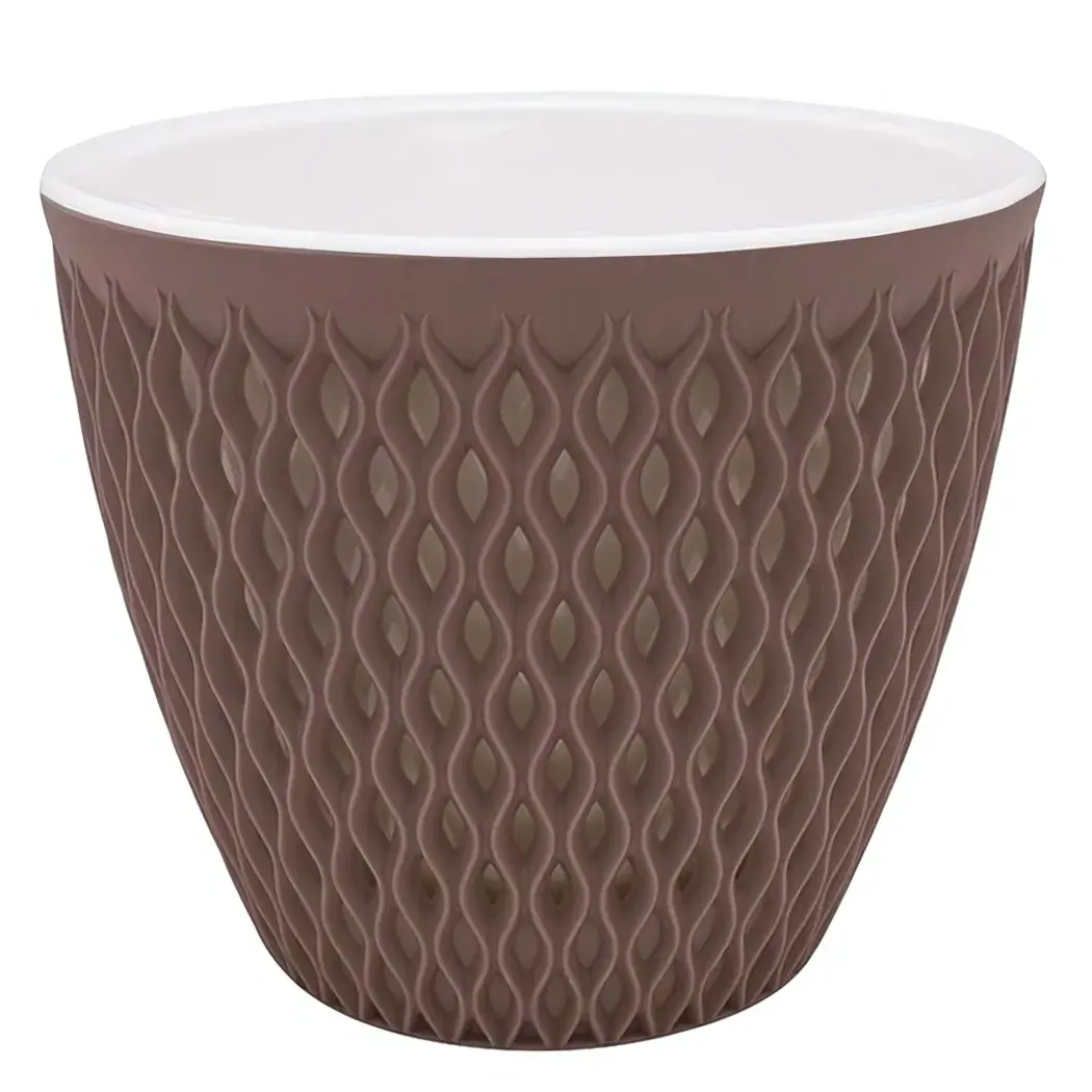 Кашпо «Версаль» пластиковое 1,6л, d16см, цвет мокко, ажурный рельеф, дренажная вставка