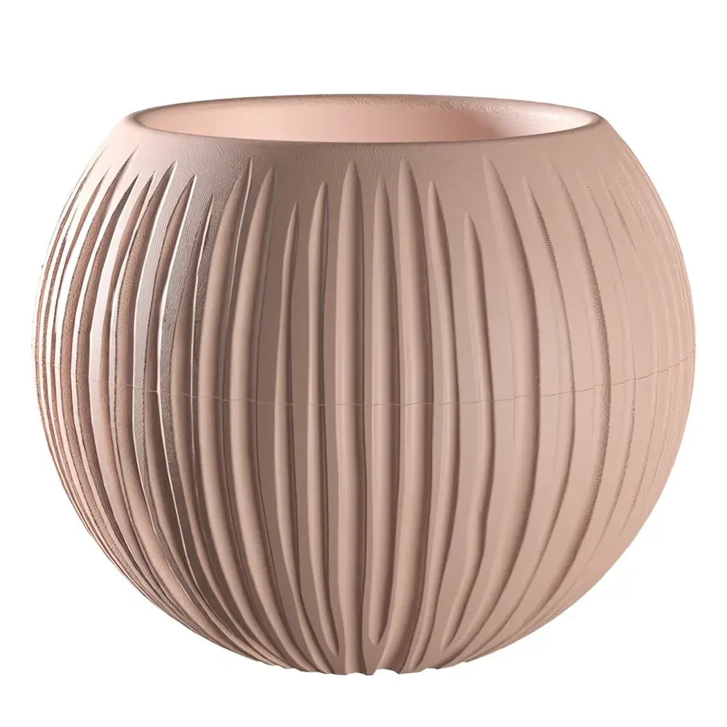 Специальные вертикальные рёбра жёсткости не только украшают кашпо, но и обеспечивают воздухообмен для корневой системы. Широкая горловина упрощает пересадку растений, а гладкие края безопасны для рук.