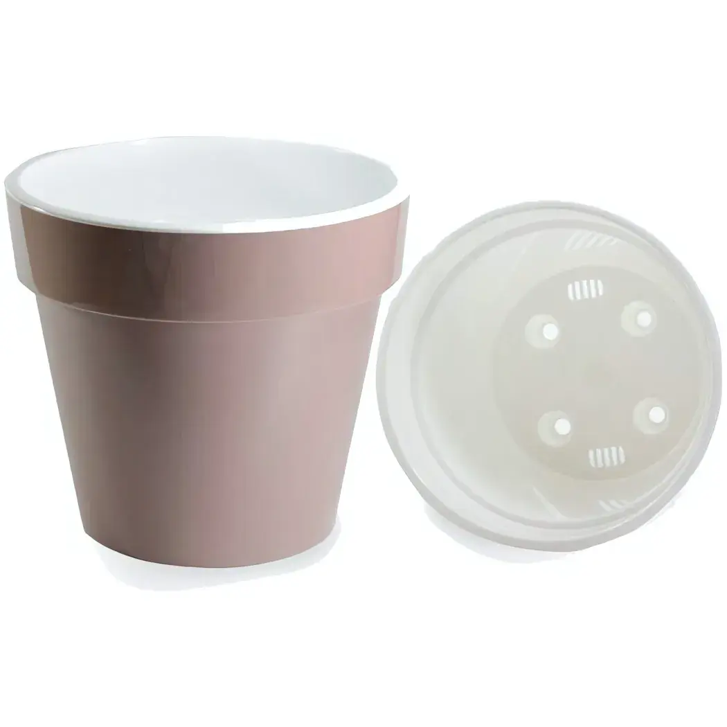 Кашпо выполнено из качественного пластика, что обеспечивает его долговечность и легкость. Внутренний слой белого цвета создает контраст с нежно-розовым внешним слоем, что делает его привлекательным для глаз. Размеры кашпо позволяют использовать его для различных растений, от небольших цветков до более крупных экземпляров.