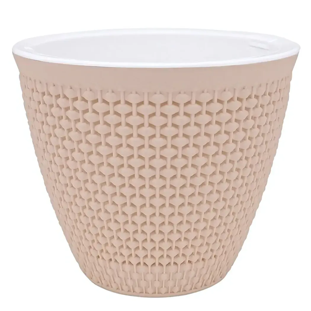 Кашпо пластиковое 'Ротанг' 2,25л d-17,5см пудровый с дренажом
