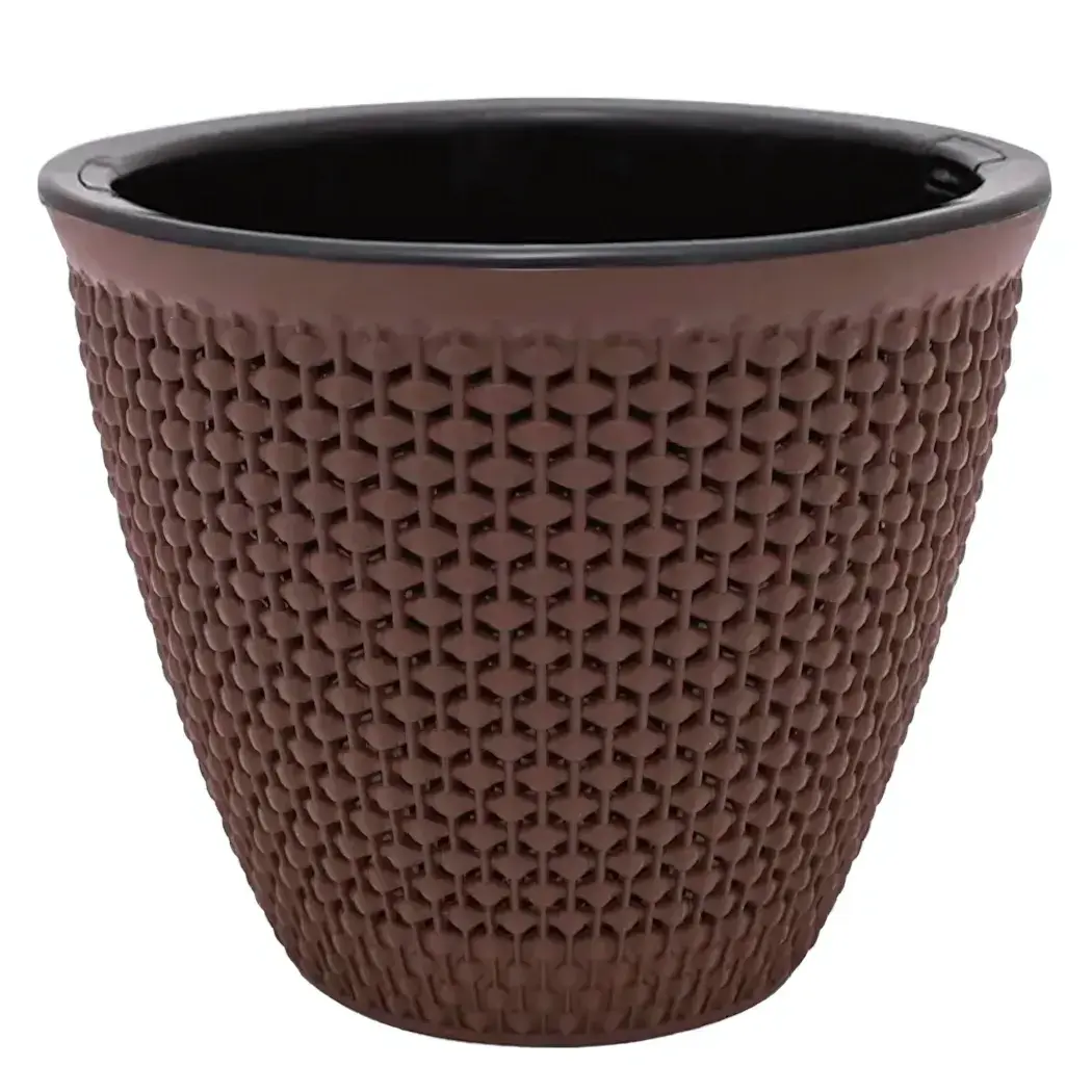 Кашпо пластиковое 'Ротанг' 2,25л, d-17,5см, тёмно-коричневое, с ручками