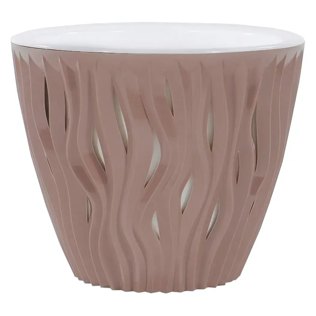 Кашпо выполнено из прочного и экологичного пластика, что делает его безопасным для окружающей среды и здоровья человека. Оно идеально подходит для использования как в домашних условиях, так и на даче. Легкость материала позволяет без труда перемещать кашпо, меняя местоположение растений в зависимости от ваших предпочтений.