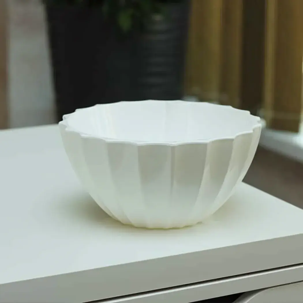 Кашпо имеет размеры 22 см в диаметре и объем 2,4 литра, что делает его идеальным для большинства домашних растений. Его белый цвет и рифленая текстура придают ему эстетичный вид, а также делают его легким в уходе. Вы можете легко очистить его от загрязнений, и он будет выглядеть как новый даже после длительного использования.