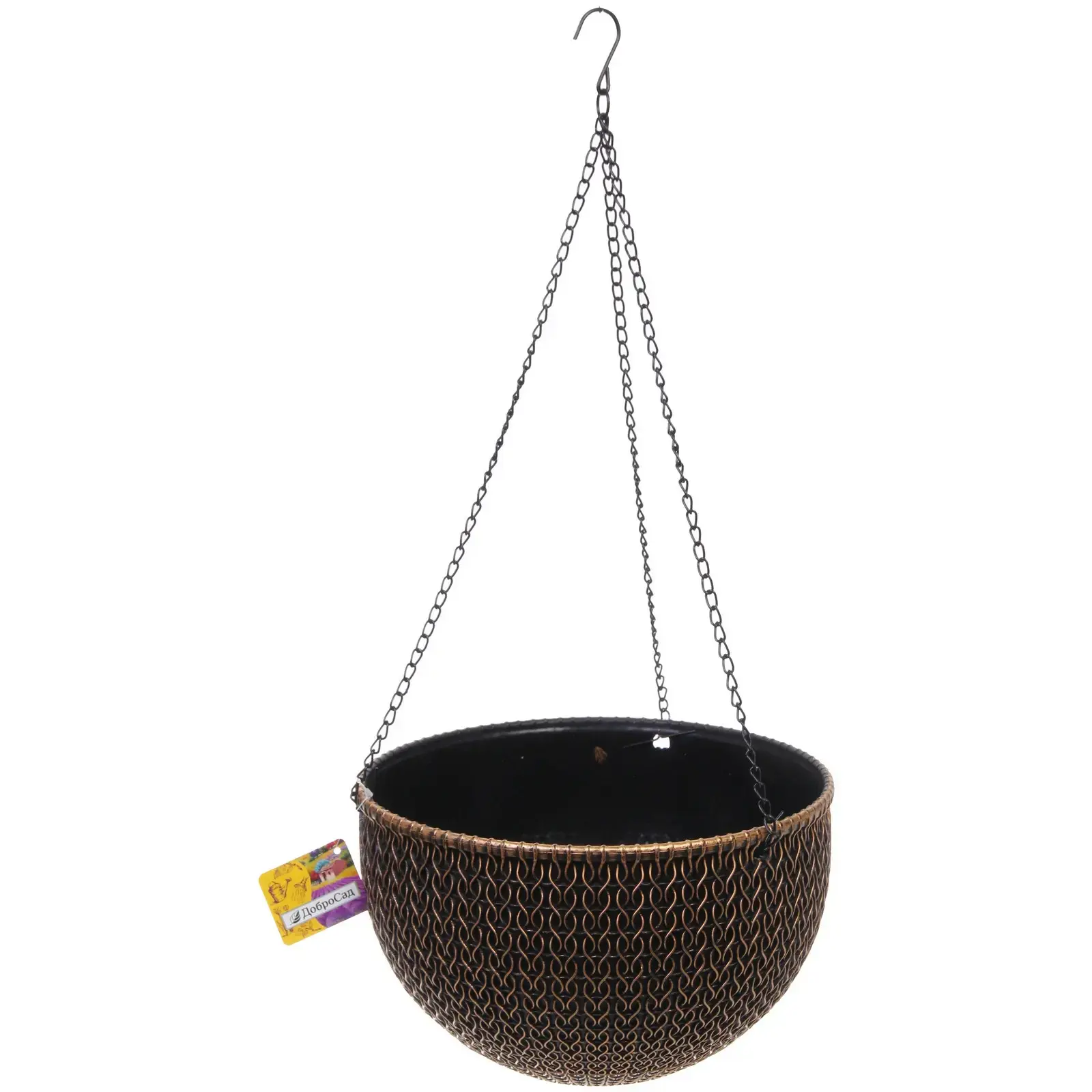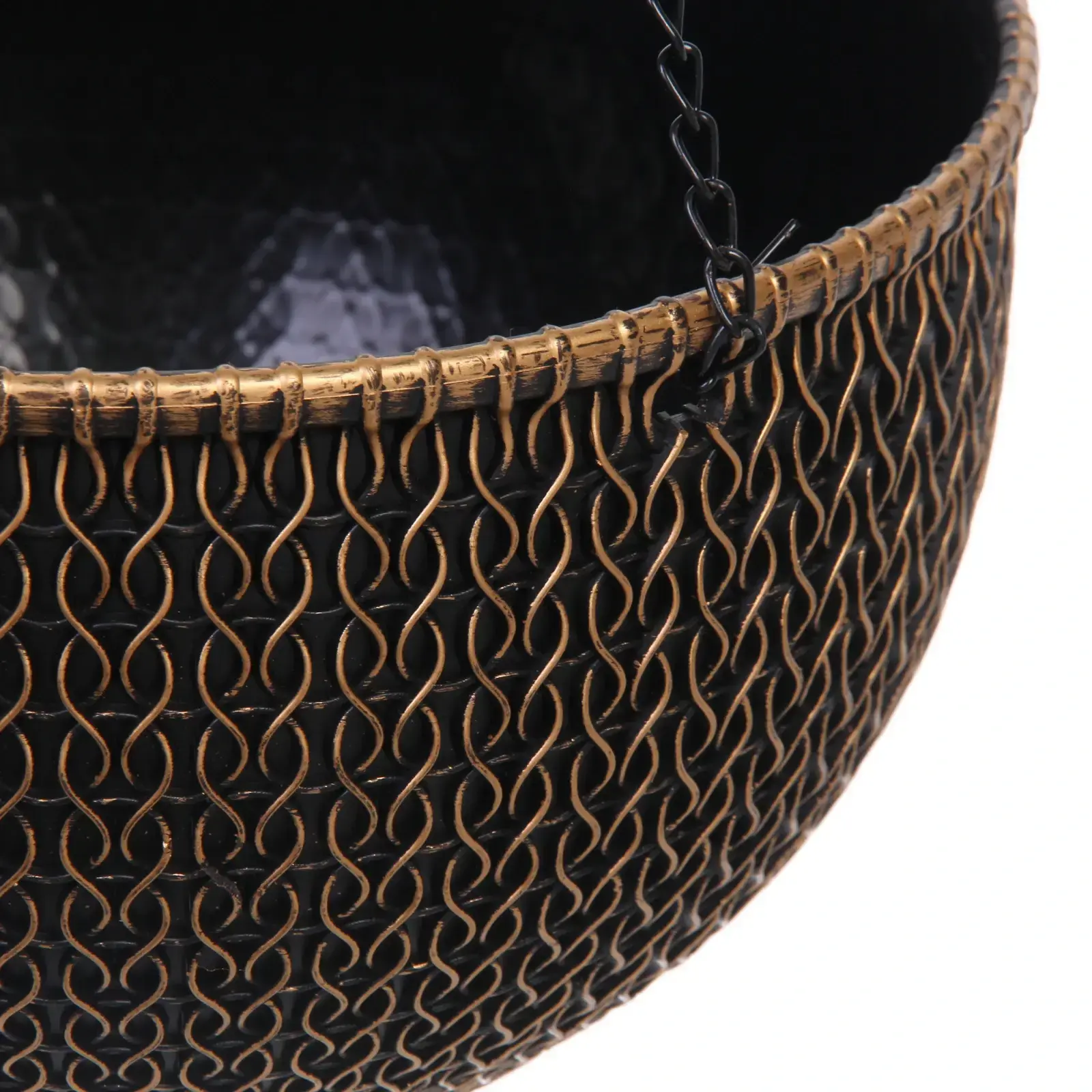 Размер кашпо: 25×15см, цвет: золото с черными элементами. Материал корпуса — прочный пластик, детали крепления и декоративная сетка — металл. Подходит для размещения декоративных и цветущих растений, оптимален для выращивания как дома, так и на открытых площадках.