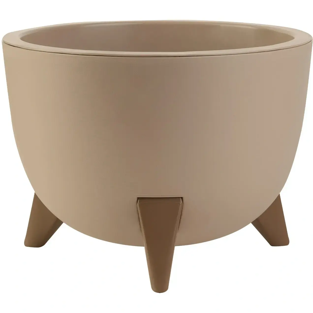 Кашпо имеет гладкую поверхность и утолщенную верхнюю грань, что придает ему современный вид. Ножки кашпо выполнены в бежевом цвете и имеют треугольную, конусообразную форму, что создает единый стильный дизайн. Это кашпо станет отличным дополнением к вашему интерьеру и поможет создать уютную атмосферу в вашем доме.