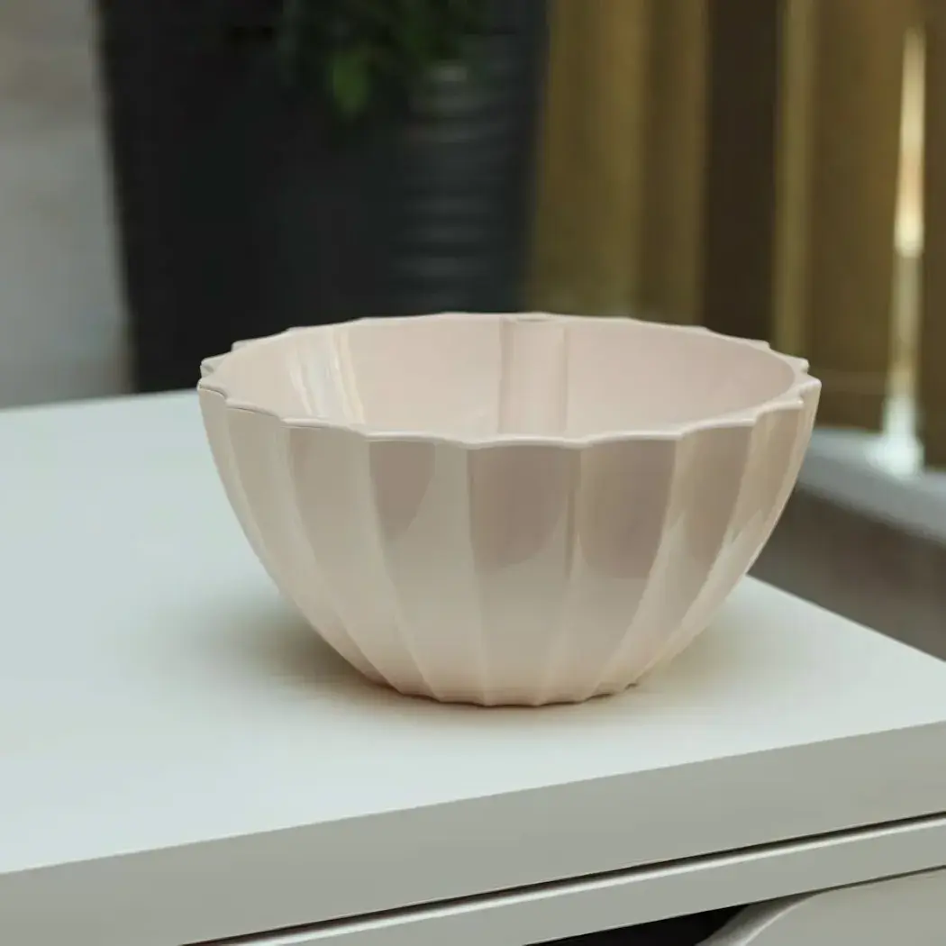 Кашпо выполнено из качественного пластика, что обеспечивает его долговечность и легкость. Нежно-розовый цвет и рифленая поверхность придают ему уникальный стиль. Размеры кашпо: объем 3,4 литра, диаметр 25 см. Это идеальный выбор для тех, кто ценит красоту и функциональность в одном изделии.