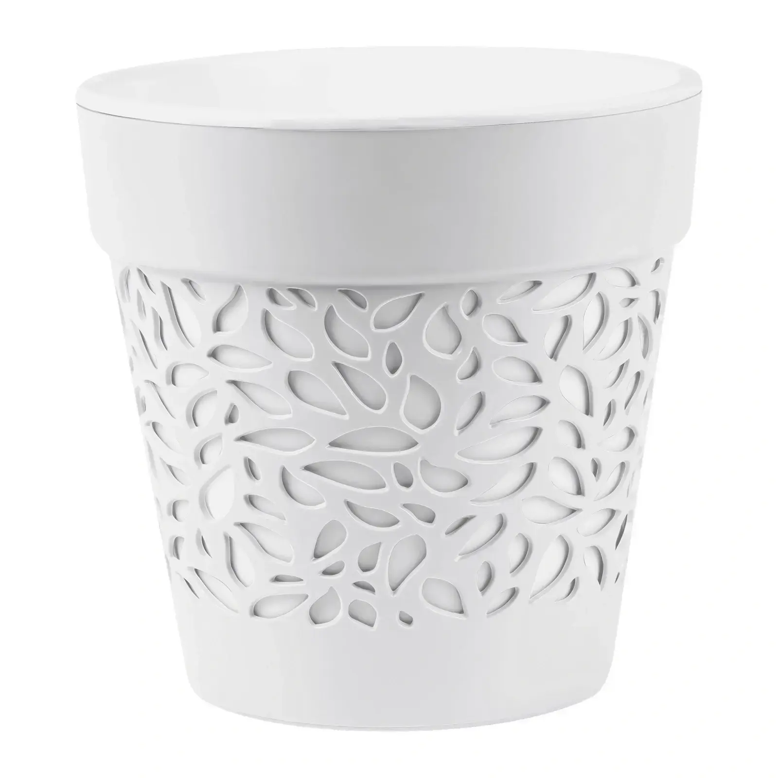 Превратите свой дом в уютное пространство с кашпо 'Блоссом'. Его изящный дизайн с декоративной перфорацией в виде листьев станет идеальным акцентом в любом помещении.
