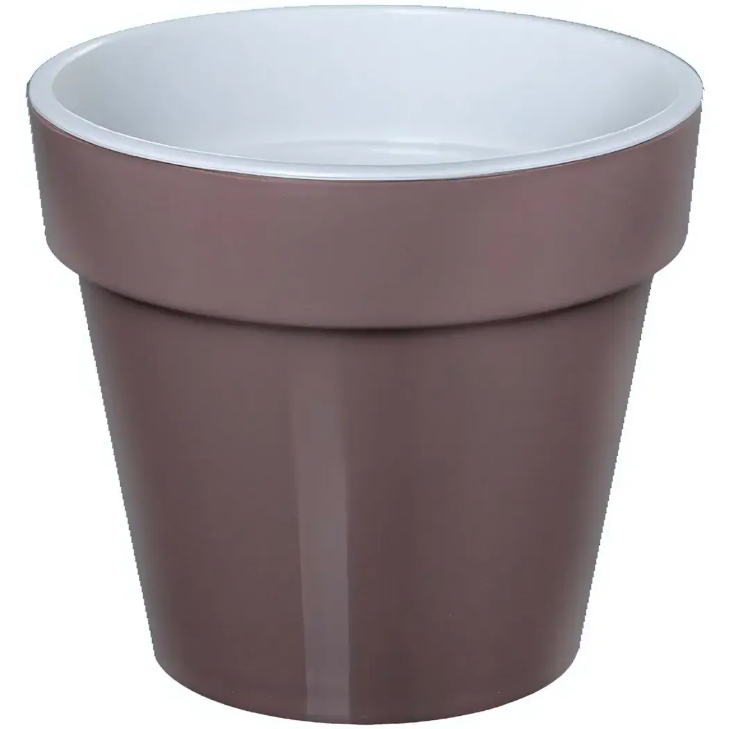 Пластиковое кашпо «Порто» сочетает практичность и эстетику: матовая поверхность мокко снаружи и гладкая белая вставка внутри создают эффект двойного слоя. Идеальный выбор для тех, кто ценит аккуратный внешний вид и удобство в уходе.