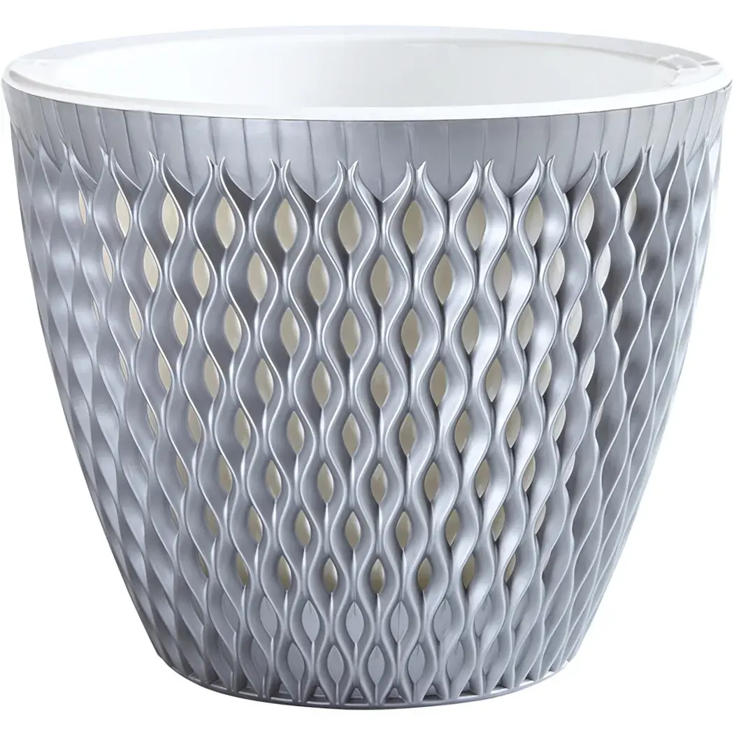 Пластиковое кашпо «Версаль» объемом 3 литра станет отличным решением для любителей растений. Его легкость и удобство в использовании делают его идеальным выбором для любого дома или дачи. Серебристый цвет и волнистая текстура придают горшку стильный и современный вид, который легко впишется в любой интерьер.