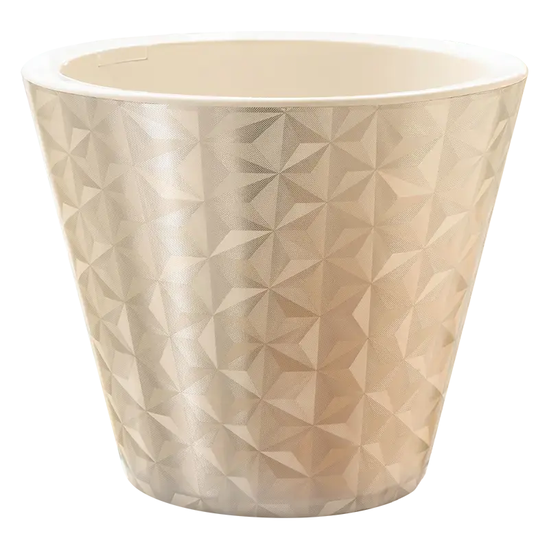 Кашпо пластиковое 'Грани' 3л, d-19см, кремовый с перламутром