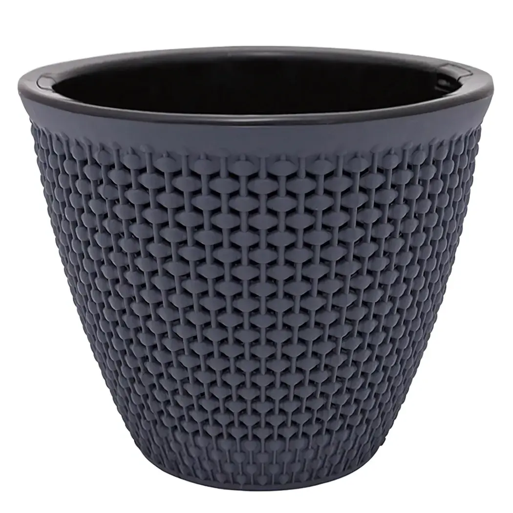 Кашпо пластиковое 'Ротанг' 3л, d-19см, цвет антрацит, с ручками и дренажом